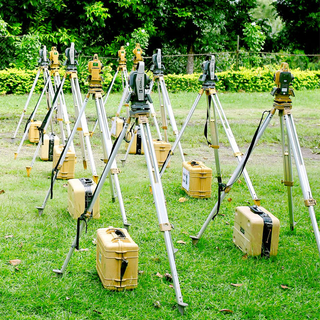 ELECTRONIC TOTAL STATIONS have opto-electronic distance meter (EDM) and electronic angle scanning to digitally measure angles and distances in order to record topographic features of a parcel land or to set out boundaries of certain lots, roads, houses, and the like. With the use of the electronic total stations, ESC can measure and record survey points that can be downloaded to computers for speedy and more accurate data processing.